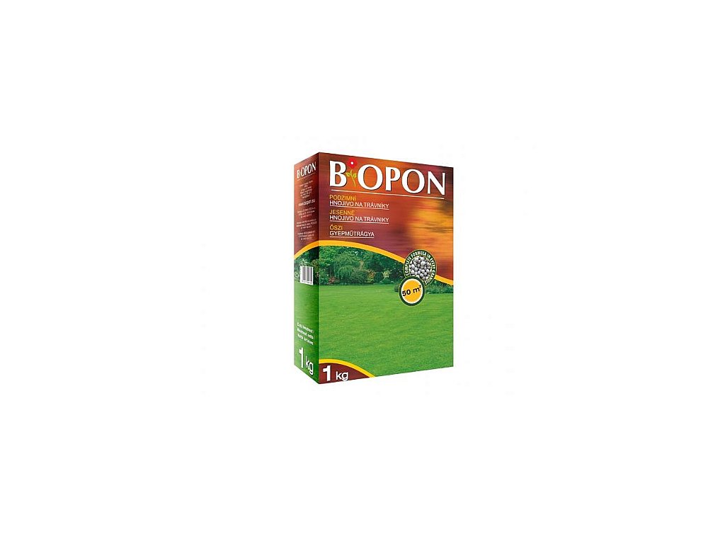 Bopon Podzimní trávník je pomocné hnojivo nezbytné k přípravě zeminy na podzimní-zimní sezónu. Toto hnojivo tvoří víceložkové granule (komplexní složení v každé granuli), je ideální na hnojení trávníku. Nedostatek dusíku způsobuje omezení růstu trávníku, takže během teplého období není nutné časté sečení. Vysoký obsah draslíku zvyšuje odolnost proti mrazu. Minerální hnojivo doplní živiny v půdě a vytvoří jejich zásoby potřebné pro vegetaci v příští sezóně.