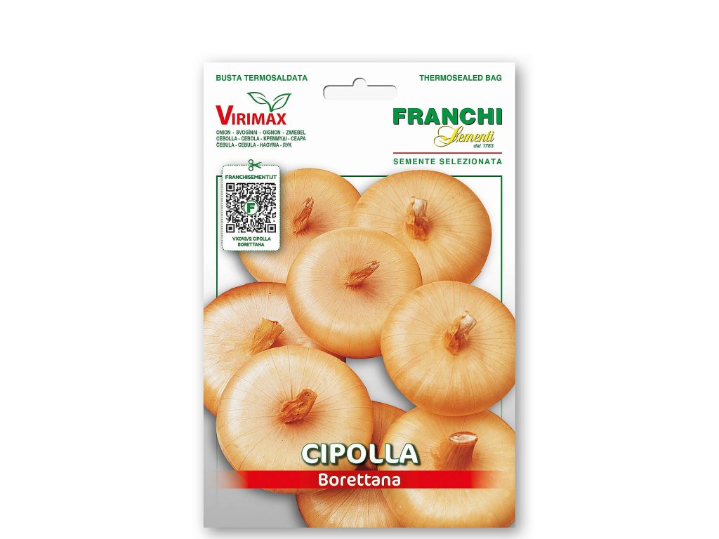 Cibule - BORETTANA je středně raná odrůda. Rostlina dorůstá střední velikosti s plochými cibulemi a bílou měkkou dužninou.Výsev: VII - IX