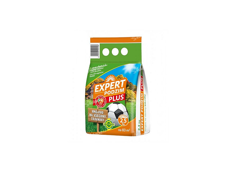 Hnojivo EXPERT PODZIM je granulované hnojivo, vhodné pro podzimní a pozdní podzimní hnojení všech druhů trávníků. Vysokým obsahem draslíku se zabezpečí vysoká odolnost trávníku proti vymrzání a napadení houbovými chorobami, které se šíří hlavně pod sněhovou pokrývkou. Použitím tohoto hnojiva na začátku léta (červen), se zvýší odolnost trávníku proti suchu v průběhu letních měsíců. Jemná granulace, potlačování mechu v trávníku.