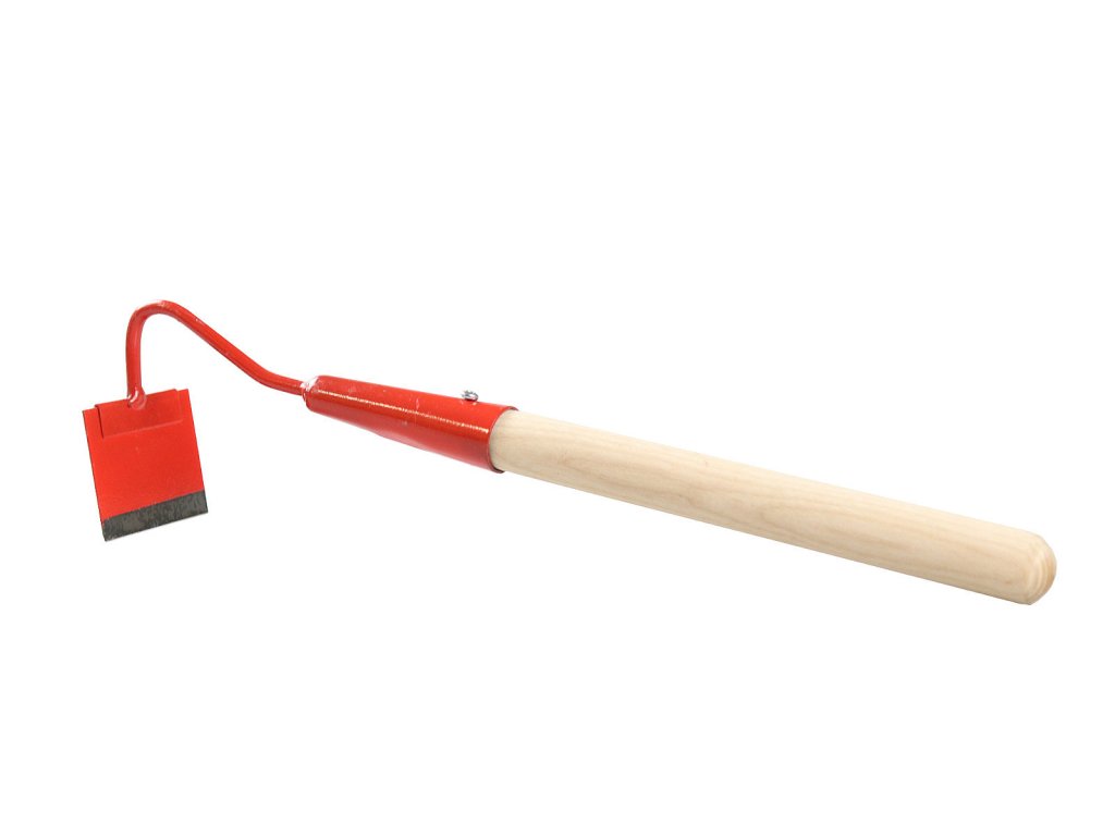 Motyčka z kaleného (pružinového) plechu o šířce 8 cm. Vhodná na narušení zaschlé půdy, na podřezávání plevele s trávy nebo seškrabávání nečistot z rovných ploch např. chovatelé, holubáři. Součástí výrobku je jednoruční násada 20 cm dlouhá. Možno předělat na dlohou násadu z koštěte