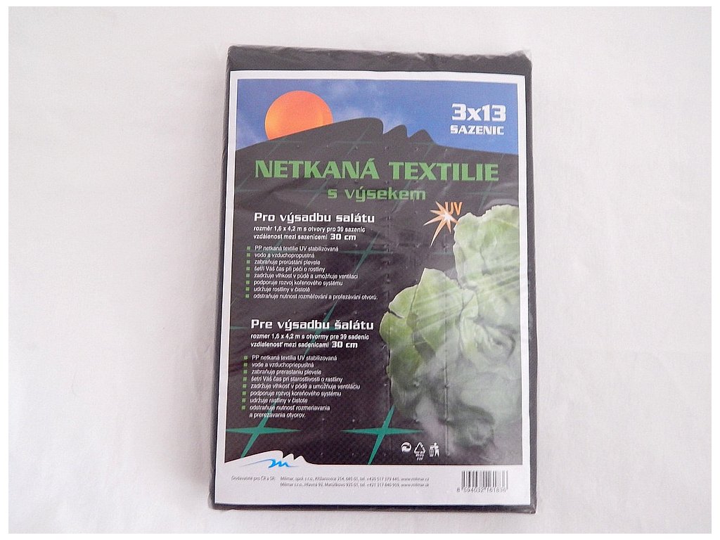 Černá netkaná textilie je vyrobena ze 100% polypropylenu odolného proti slunečnímu záření, napadení plísněmi, různými mikroorganismy, houbami, či hmyzem.